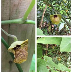 No.515 ウマノスズクサ 和名:馬の鈴草 ウマノスズクサ科ウマノスズクサ属 その1 和名は、葉が馬面に似ており、花後にできる果実が馬に付ける鈴に似ているから🎵 花はトランペット🎺のような形をしています🎵 根は「青木香(しょうもっこう)」、果実は「馬兜鈴(ばとうれい)」という生薬で、去痰、鎮咳に効果があります✨ また、ジャコウアゲハの食草です🎵