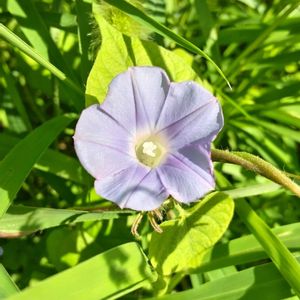 放ったらかしの花壇の中、昼過ぎなのにまだ咲いていました。 AIがマルバアメリカアサガオと教えてくれました❗️ 花はヒルガオほどの大きさで、萼の先がクルッとなっているのが特徴にあっていました。 以前にマルバアサガオと投稿したのもこちらかもしれません😅 ③はカタバミの中から顔だけだしていて、思わず笑ってしまいました😉❣️