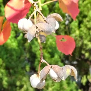 紅葉した葉っぱに白い実。 ナンキンハゼです❣️ 可愛い弾けた実もありましたよ😃