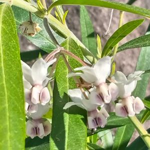 歩道脇の植え込みのナワシログミ。 上の方が綺麗に刈り込まれているので花が見える位置で沢山咲いていました❗️ 下向きに咲く花が多い中、上向きに咲いているのが撮れました❣️