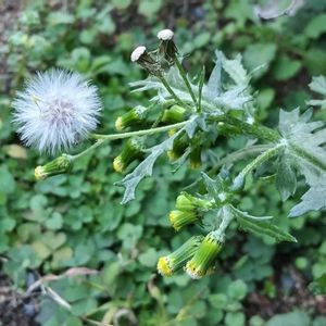 野草が抜かれた後の花壇にポツンと咲いていたノボロギク。 綿毛だけでなく、クラゲさんも、恐竜🦖のツメも健在ですね❣️