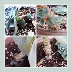 🏷令和の芽 ↖️クラッスラ ワーテルメイエリー花芽( ゚▽゚)/コンニチハ ↗️南十字星には可愛い新芽が ↙️アロエ ぺぺも 花芽伸びてるね、こんな時期にだったかな? ↘️フォーカリア 四海波 一番上のギザギザ付いてないのは花芽❀ 下の方の芽はギザギザ付いてるから、葉っぱ🌿