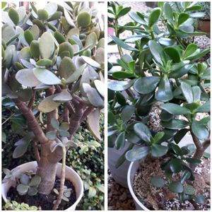 家の花月さん達です🌱 左側の花月さんは、先日道の駅で生産者さんの名前入りて500円と名札が付いてあり思わずレジへ行ってました😅年季が入っていて最初クモの巣がはってたのですよ💦朧月さんもいますよ😃新芽もついてます🌱 右側は、4年前に文化祭で小さな花月を3っもらいました🌱 その内の2つを大木にしょうと大きな鉢に植え替えて4年💦 葉っぱばかり大きくなって横に伸び大木まで何年かかるだろう(笑) 写真じゃ見にくいけど💦新芽も出てます🌱 最後になりましたが💦 令和の芽に参加させて下さいね🌱🌱