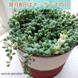 おはようございます☔ 朝から強い☔です😨もう雨降らないで💧🙏 毎月8日はネックレスの日です∞∞∞ ネックレスの日のタグを付けて投稿お願いします(⋆ᵕᴗᵕ⋆)どなたでも参加できますよ(。•̀ᴗ-)و ̑̑✧ この雨でちょっと心落ち着かないですが💦うちのネックレスちゃん✨ 大好きなエンジェルティアーズ錦です🌱 大きな鉢から、待ちに待ったネックレスらしく、やーっと垂れ下がるようになりました∞みどりんの中に真っ白な子もいて気になります😊 今日は1年ぶりくらいの歯医者さんです😭 行きたくないけど、ご飯食べると奥歯に違和感とちょっと痛みがあるので😥行きたくないけど、しかたなく決死の判断💦 歯医者さん、好きな人っているのかな? 🏥12時の予約だけど、ドキドキして早めに行こ…行きたくないよー😭