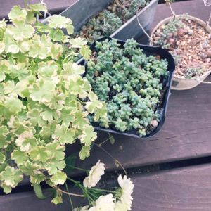 『チドメグサ・クリスタルコンフェッティ』 柔らかなグリーンの班とちまちました形に、10月18日ひとめぼれ💗 冬は地上部、なくなるらしいけど……💦 『ブレビフォリウム』 やはり10月18日、目的の子に会えず、予定外の衝動買い。 我が家のブレビフォリウムらしき子よりちょっと大きい気がする。 ふたつに分けた。 もさ子になってね💗 『エレモフィラニベア』 10月9日、土砂降りのホームセンターの室内に避難されていた子をリベンジ買い。 この子は何度目だろう❓というくらい枯らしては連れてくる、大好きなの💗 屋根のあるところに置いてみた。 私のリメ缶はちょっとうるさいのでアクセント的に、最近のリメ缶は、白系でシンプルに🎵 トマト缶のサイズすらまだ作ったことがなくて、初めての大きい缶、楽しかったー‼️ ここで見かけて、ダイソーのジョウロピックに色を塗ろうと思ったけど、赤、いいね😳 シクラメンは母からのプレゼント💝 普段赤は苦手だけど、嬉しい😆💓