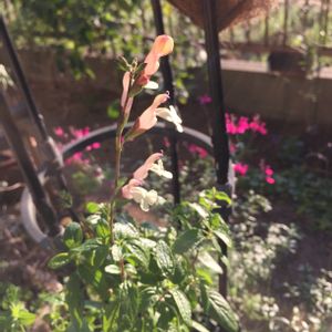 『チェリーセージ・ムーンライトセレナーデ』10月23日売り場で散々悩んだものの、立ち去ることができず、連れ帰る……。 チェリーセージ大好きで、赤もピンク(後ろにぼやーんと見えるのが地植えのピンク)もあるから、欲しかったブルーも我慢しているのに、初めて見たこの色にすっかりヤラレてしまった💦 まだ少し蕾が💗 草花はほんとに場所がないよー💦 (南はススキの根っこがどんどん入ってきて、しょっちゅう土を掘り返すから、野菜以外は諦めることに😢)