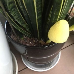 黄色のキノコ出た 幸運のキノコ サンスベリア コガネキヌカラカサダケ🍄