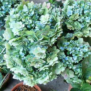 蕾がついている紫陽花 記録用に。 クレイジーテンシアは超矮性種でテーブルアジサイと言われているらしい。