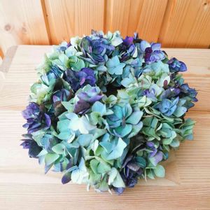 8/1に投稿したグリーンリース、ドライフラワーになりました 青(筑紫の風)が鮮やかに残りましたが、アナベルの緑色が暑さで色あせが早い😅 ちょっと前まで綺麗な緑だったのにー😑 暑いのはもう充分なので、早く涼しくならないかなぁ💭