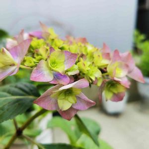 紫陽花 筑紫の風咲き始めました 一昨年、挿木にして初めての開花です 親株は青なので、この挿木株は赤色紫陽花の肥料で育てています💜 毎日変化が楽しい🎵