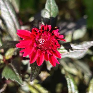 銅葉ぷちダリア マスキュリン 土がカサカサでお水やりを忘れられた様な瀕死の苗を真夏にお迎えして地植えにしておいたら、こんなにかわいいお花が咲いてくれました😍😍😍