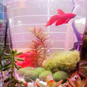 ベタちゃんに少しでも居心地良くなるよう浮き草買ってみました🐠 長生きしておくれ〜☺️💓 オオサンショウモはかなり増殖するらしいんで成長記つけようと思います(●︎´艸`)✨楽しみ♪