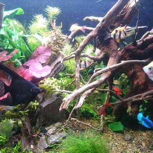 熱帯魚水槽は10匹から始めて4ヶ月で40匹以上に… もうどうしよう状態w 水は汚れるし苔はすぐ生えるし水換え掃除が大変😂 水草に生えた苔とかどーやって取るの😂 切り戻して新芽が出ても苔が生えるスピードのが早い笑 水草変えるしかないのかな^^;