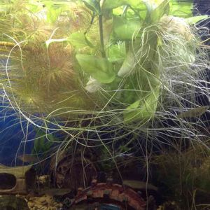 リシア(水中葉)です。 メダカ水槽になる前に瀕死の状態で生き残ったリシア…。僅かながら、水中葉復活です! Yっぽく増殖しまし。しかし、藻がひどいです。このままでは藻に呑まれる^^; いろいろ欲張り過ぎかな?