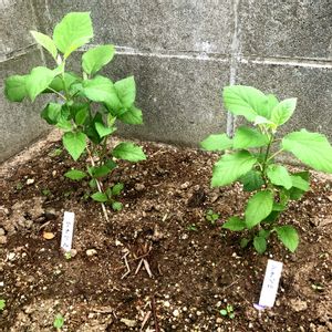 メルカリで、アナベルの挿し穂5本を購入。 冬越しして生き残った挿木苗2本を遂に地植えしました(๑•̀ㅁ•́ฅ✧ 植え付けて2週間くらいかな 大きく育ってます(^^)
