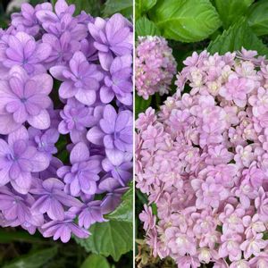 てまりてまり二鉢を一緒に撮影。 手前の薄紫が親株 奥のピンクが挿し木 違う色合いになり どちらも可愛い〜💕 また、挿し木して 増やそう🍀