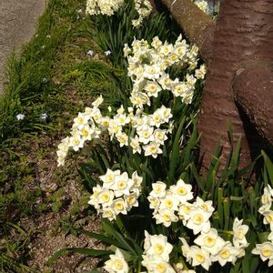 公園に続く川沿いの道 水仙の花が満開でした 🌿🤍