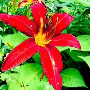 ひっそりとした静かな緑の茂みの中で、炎のような強いエネルギー溢れる色彩のオーラを放っていた、「へメロカリス」でおはようございます❤🔥💃✨ てっきり百合かと思いきや、"ヘメロカリス"は、アジア極東地域原産のワスレグサ科の多年草なんですね〰👀💓 "一日花"ながら、耐暑性・耐寒性ともに強く、土壌もあまり選ばずに、一度植えれば殆ど手入れ無しで見事な花を毎年咲かせてくれるのだそう❣ 世界に2万種以上の園芸品種が存在し、花色も赤以外に、ピンク、オレンジ、黄色、白、複色など多岐に亘り、花形も野性的な細い花弁のものから、ふくよかな幅広の花弁、フリル咲き、八重咲き、更には花弁がねじれたりするスパイダー咲き…など、実に多様性に満ちた花だと知ることができました🌎🌟 ー花言葉は、「微笑」、「憂いを忘れる」…他。