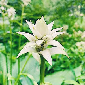 林縁の湿り気ある池の日陰に堂々と咲いていた、「大葉擬宝珠(オオバギボウシ)」でおはようございます✨🌿☺️🌿✨ "オオバギボウシ"は、日本をはじめとする東アジア地域原産のユリ科の宿根草🇯🇵 ギボウシ特有の太い葉脈の目立つ大きなハート形の葉が目を惹きますが、花茎をすーっと伸ばし、その先に白いラッパのような形の花を総状につける裂花弁もまた、造形的で優美と感じました💗 …水辺に咲く花は涼しげな佇まいのものが多く、厳しい暑さの続く日々の束の間に、心にホッとするオアシスのひと時を届けてくれますね☺️🙏🌈✨🍃⛲️🍃✨ ー花言葉は、「静かな愛」、「落ち着き」…他。