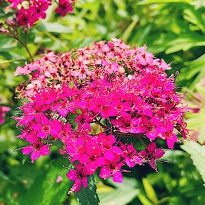 鮮やかな濃紅色の「下野(シモツケ)」でおはようございます🩷🌿🩷 "シモツケ"は、日本や朝鮮半島、中国を原産とするバラ科の落葉低木🇯🇵🇰🇷🇨🇳 日本では、現在の栃木県にあたる下野国(しもつけのくに)で一番最初に発見されたことが、花名の由来になったエピソードは有名ですね❣️ 花弁よりも雄蕊が長く突き出ているのが特徴ですが、ツンツン尖った印象は無く、寧ろ全体的にふわふわとした、柔らかな印象を与えてくれています。 長楕円形の鋸歯のある葉っぱは、秋が深まると美しく紅葉するので、その頃にまた定点観測してみたいなと思います☺️🙏🌈🍁✨ …35℃超えの異例の残暑は今日迄で、明日からはガラリと秋の気配が到来する気温のようですね📈 季節の変わり目に体調を崩されませんよう、ご自愛の程お過ごし下さいませ🍃⛅️🍂 ー花言葉は、「慎み深さ」、「努力」…他。