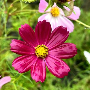 鮮やかで濃いピンクの「秋桜(コスモス)」で、おはようございます🌸☺️ 過日訪れた、水車小屋のある美味しい栃木産・コシヒカリを頂ける瑞穂蔵さんの前庭で、蔵造りの平屋を取り囲むように艶やかに咲いていました🍃🌸🌾🍚🌸🍃 https://mizuhokura-food.com/ "コスモス"は、メキシコの高原地帯原産のキク科の植物🇲🇽 日本には明治時代に伝来して以降、一重から八重咲まで様々な品種改良がなされ、現在では20種以上もの原種に加えて、花色や草丈の異なる数十種もの園芸品種も市場に出回っているようですね❣️ よく見る代表的な園芸品種には、以下のように分かり易い分類がなされていました🌼🔍🍃 ① 花が大きく早咲きで丈夫…センセーション系 ② 筒状のユニークな花弁…シーシェル系 ③ 豪華な花を咲かせる…ダブルクリック系 …都心部も、昨日からようやくカラッとした爽やかな秋の空気感に包まれました🌤️ 心安らぐ「秋分の日」をお過ごし下さいませ✨🌈🕊️🍃 ー花言葉は、「恋の終わり」、「調和」…他。