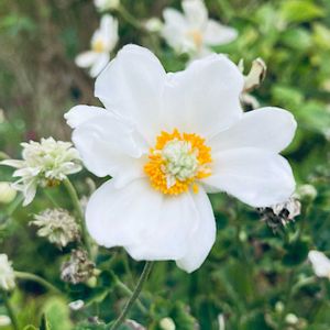 落ち着いた秋の風景によく馴染む、純白の「秋明菊(シュウメイギク)」で、おはようございます✨🍃🌼🍃✨ 今季も可愛い秋明菊と再会できて、懐かしい友と遭遇した時の喜びに似た嬉しさに満たされました❣️ 長く厳しい猛暑がようやく過ぎ去り、いつものお気に入りのお散歩コースには様々な秋の草花が咲き始め、"移ろいの美"をそこはかとなく知らせてくれています🍃🍂🚶♀️🎶 "秋明菊"は、中国原産のキンポウゲ科の植物🇨🇳 アネモネの仲間でもあり、「ジャパニーズアネモネ」と呼ばれることもあるようですが、京都の貴船山に自生していることから由来する、別名の「貴船菊(キブネギク)」という美しい和名の響きの方が、より私好みです🥰🙏🇯🇵💞 ー花言葉は、「淡い思い」、「多感な時」…他。