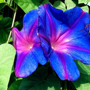 色鮮やかなブルーが印象的な、「オオバアメリカアサガオ・"オーシャンブルー"」でおはようございます💙❤️ 公園の原っぱに忽然と、見上げる程に草丈高く生長した朝顔の蔓が塔のように現れて、二輪だけ、ピッタリ寄り添うように咲いていました😃 "オオバアメリカアサガオ"は、メキシコや中央アメリカ、カリブ海といった亜熱帯地域に自生する蔓性の多年草🇲🇽🏝️ 花弁は直径10cm程のくっきりした青紫色の大輪で、中心部に赤紫色のラインが入ったツートンカラーが特徴です。 初夏から例年11月頭頃にかけて、次から次へと咲き始める開花期の長い朝顔ですね💕🗓️✨ ー別名は、「野朝顔」、「琉球朝顔」。 ー花言葉は、「愛情の絆」、「明日も爽やかに」…他。