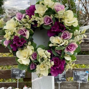 これもビオラと 葉牡丹のリース✴️🧡 葉牡丹 茶系に見えるけど 小豆色?紫の渋い色だよね?🤔