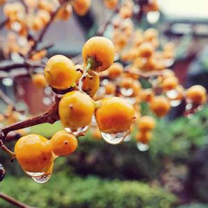 ✨ツルウメモドキ✨ 葉が散り、オレンジがかった実がなり あとは、実が弾けるのを 待つばかり😊 雨の💧滴も素敵💫
