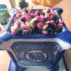 先日お迎えした桜吹雪さん♡ 根が細くて短くて泣きそうな植え替えでしたー😭 (って、夫にやってもらったのですが🙊) 藍色の器がよくお似合いかと😍