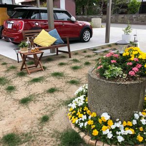 畑の隅っこに追いやられていた土管運んできて、お花を植えてみました。 すっごく、素敵に大変身✨ 芝生は、只今育て中