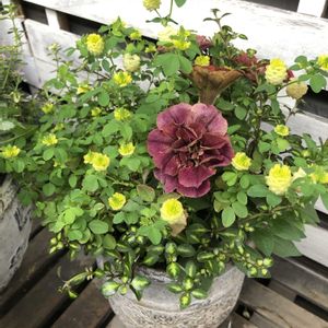 トリフォニウム ラッキークローバー🍀 あっという間に 黄色い小粒ワールドに 飲み込まれたペチュニアさん 黄色いシャリシャリした 小花が可愛いんよね💛