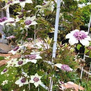 2年目のクレマチス テッセン𓂃𓂂ꕤ*.゚ 今年も沢山咲いてくれました ✌︎( ◜ᴗ◝)✌︎ 小庭が賑やかです .𖤣𖠿𖤣𖥧𖥣。𖥧