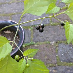 この子1ヶ月くらい前は 白い小さな花が咲いてました。 その後グリーンの実から黒い実に。 有毒なんだって! どうしてこの子があるのかな? 記憶がないよ(笑)