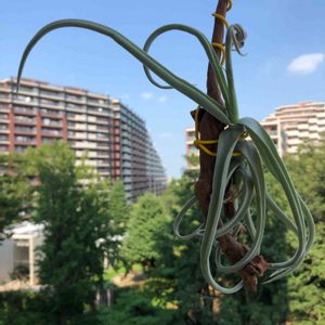 連投…m(_ _)m 大型チランジア🌿 少し前からお外管理にしましたが、葉っぱも生き生きして元気な感じです😃⤴️⤴️ お水もバシャッバシャッと🚿かけても回りに気を使うこともないですし、風に吹かれて気持ち良さそうなチラさんたちを見ていると、気持ちの良い陽気は植物にとっても同じ何だなぁ~と感じますね😉🎶✨ ワシャワシャと繁ってきたリプサリスさんの先端に花芽がいっぱい付いてます🌸🌼🌿 今は白いポッチにしか見えないですけど😆