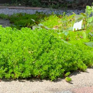 ここだけ緑のグラデーション💚目にとまりパシャ すぐ調べるとセダム属マンネングサ属 種類たくさんᯅ̈.ᐟ.ᐟ 花言葉「静寂 」午後から落ち着こう~(昼寝)🥱😴 昨日リハビリ病院前の歩道にて