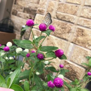 おはようございます。 センニチコウをドライにしました。 フレッシュのまま 飾りながらドライ! 束ねただけなので リボンをしてスワッグ風に(*´罒`*)ニヒ♪ 切り戻しをしてたら 小さなお客さんが…❤︎*。 かわいい蝶々さん🦋 タイミング良く撮れましたよ(*´ ˘ `*)ウフフ♡