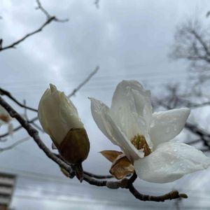 おはようございます😃 先日撮ったハクモクレンです💛🌟 雨上がりの曇りの空にハッキリ写っていませんが😅☁️ 今日は良いお天気です🌞 桜を見に行って来ます🌸🌸