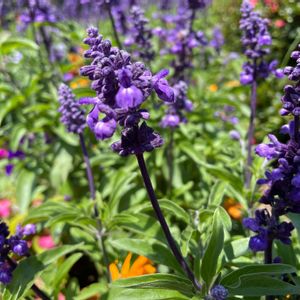 おはようございます😃 今日のお花「ブルーサルビア(サルビア・ファリナセア)」です💛💚💜🌟 シソ科サルビア属の一年草です🌼 今夜は曇りの予報です🌥 月が見られたら良いのですが🎑🌕