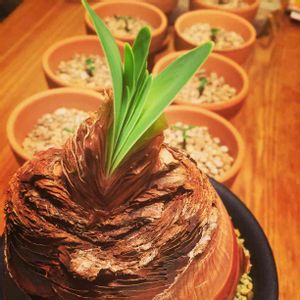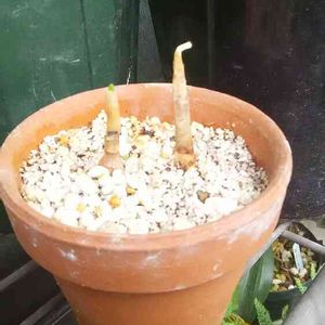 おはようございます。 ブーファンの実生球根を手に入れましたので、植えてみました。10年後位には、花が咲くのかな〜