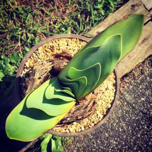 いつの間にか葉を大きく伸ばしていた。 果たして良い状態なのかは不明だけれど、枯れていないし、良しとする。 適切な管理者を選択した私の目に狂いはなかった。 私だったら、多分球根だけになってるなと。