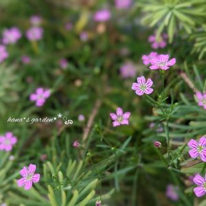 小さな花たちは…背も低く 間違ったら踏まれちゃう💦 だからた〜〜くさんの仲間たちで賑やかに咲く☝️ ここにいるよ〜ってね☺️ 鉢にいたティントクローバーは、ヒョロリヒョロリとお外へ…あ〜ダラリんだぁ😅