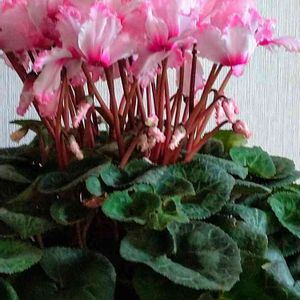 1/ 18 雪ではない冷たい雨の土曜日 シクラメン 葉っぱの数だけ花が咲く…と。 🌿葉っぱ 凄くもっさもさ⤴️ 花もびっちり どっしり 重たい シクラメン