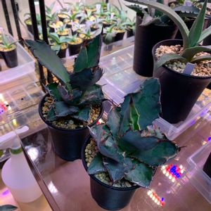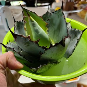 アガベチタノタBB。難しいってよく言われるやつ。たしかに綺麗に丸く育てるの難しいね。成長重視だから気にしないけど、広がっちゃったねー。成長点を棘が抱え込んで倒れるし、自傷するし、手のかかるやつ。まっでも大きくなったね✨
