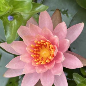 (メダカとビオトープ) 1️⃣温帯スイレン やっぱり、スイレンとメダカは相性バツグン😊 2️⃣ シラサギカヤツリ🎐 風に揺れるさま、涼しさ演出😊 3️⃣ ウォーターバコパ 小さい青い花、いい仕事してるね😊 4️⃣名前が分からないコケ 赤ちゃんメダカの隠れ家のはず😊 5️⃣庭のデルフィニウム 二番花、もうお終い🌸