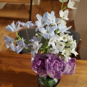 デルフィニウムの生花なのにドライな感じに一目惚れ♥️ チューリップも変わった種類♥️ 名前忘れちゃった。。