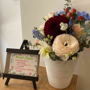 初めてのアレンジ!オアシスを水に濡らすのも初めて!楽しかったぁ。これから10日に1回は花屋さんに行ける喜び♡