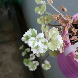 こちらもグランドカバーにしている斑入りグレコマ 薄紫色のお花が咲いてる(о´∀`о)