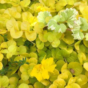 庭木の根元に大繁殖して増え過ぎてるリシマキアの葉っぱが黄色くて花が咲いてる事に気がつかなかった😅 木の木陰になってる所は黄緑に近いのに日当たり良い所は真っ黄色で葉焼けしてる部分もちらほら...