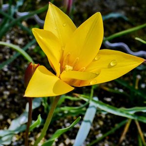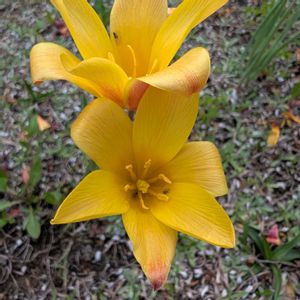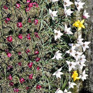 買い物に行く途中 団地の花壇に 「あれっ💦ゼフィランサス❓」 帰ってググってみると 原種チューリップ レディージェーン (ツルパ・クルシアナ)チューリップ🌷だった😅 アフガニスタンからイランに自生する野生チューリップです 愛らしい姿から英語では「レディーチューリップ」と呼ばれます 葉は濃緑色の細い紐状て 花冠はカップ形で 日が当たると平開します 花弁の内側は黄色く 外側はオレンジがかった赤色です ユリ科チューリップ属の多年草 学名はクリサンサ 次はどこででも見られる普通のチューリップ🌷 好きだなぁ💕 近くにたくさん咲いていたムスカリ💜 今度はピンク色🩷のキルタンサス(フエフキスイセン) 今年も見つかりました👀 川沿いの遊歩道や 電柱の足元にも🤗